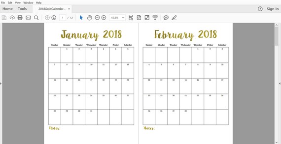 2019 Monthly Gold Calendar Editable Printable Template Word Pdf