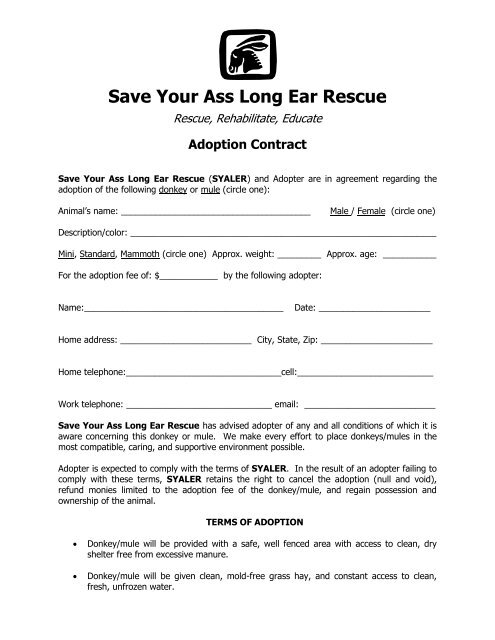 Download Adoption Contract Pdf Format Save Your Ass Rescue