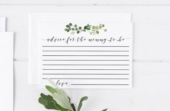 Advice For The Mommy To Be Printable Note Card Template Baby Shower Cards Baby Shower Invitation Template Baby Shower Game Greenery