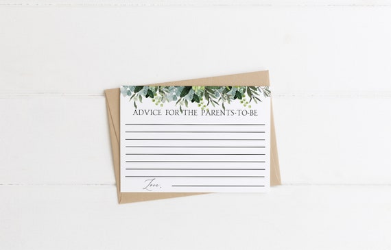 Greenery Advice For Parents To Be Card Advice Printable Note Card Baby Shower Note Card Advice Insert Card Green Foliage Succulent 12