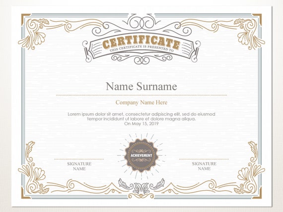 Certificate Of Achievement Editable Certificate Corporate Award Certificate Template Blank Certificate Elegant Certificate Download