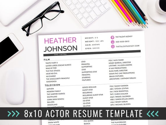 Actor Resume Template 8 X 10 Acting Resume Instant Digital Download Ms Word Actor Marketing Heather Fuschia