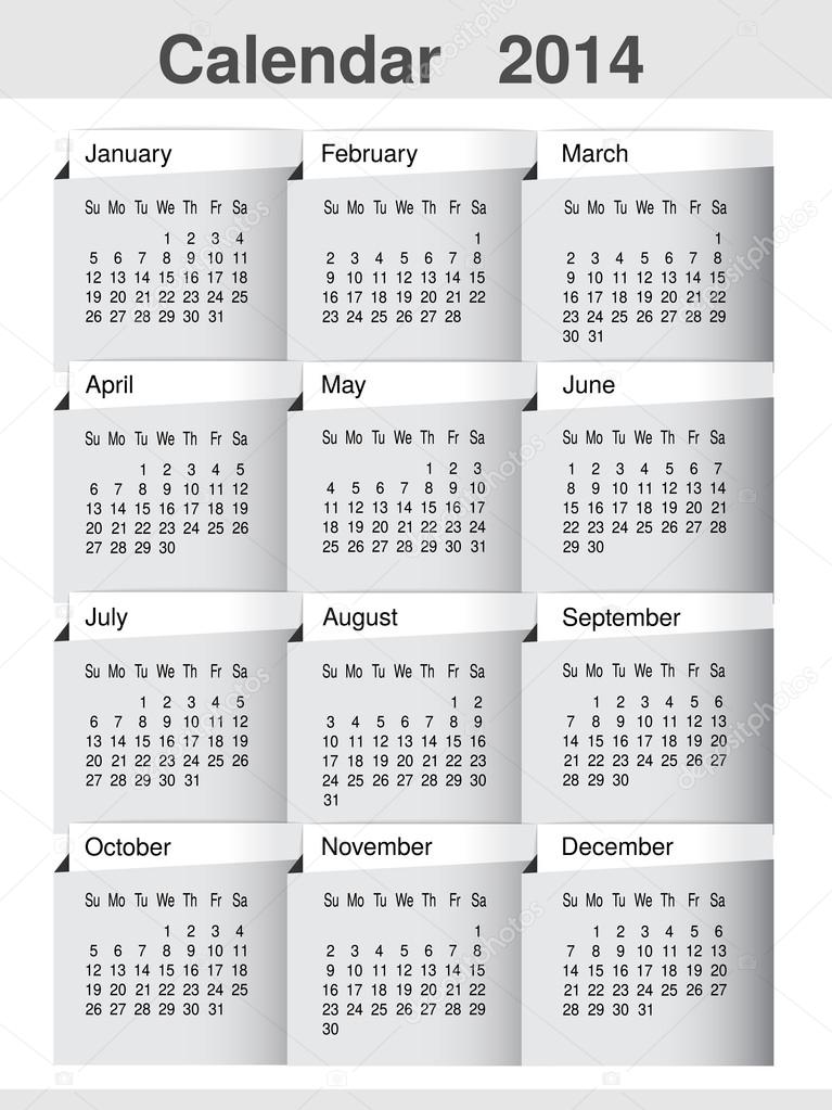 Vector Simple Calendar 2014 Year Template Modern Layout