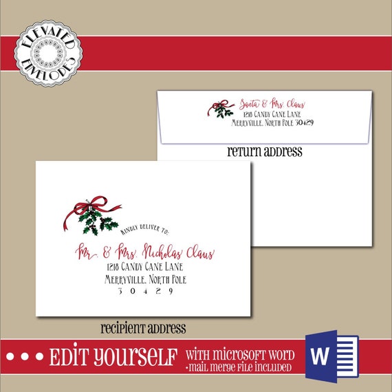 Editable Christmas Envelope Template Christmas Envelope Addressing Christmas Word Mail Merge Instant Download Return Address Template