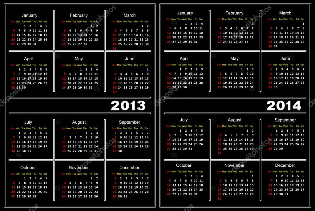 Black Calendar Template 2013 2014 Stock Vector C Silantiy