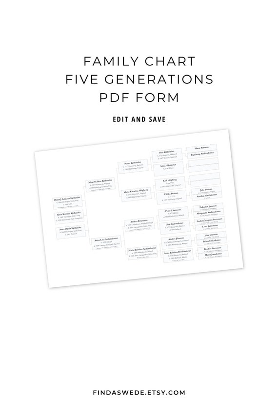 Pedigree Chart 3 Siblings 5 Generations Editable Template