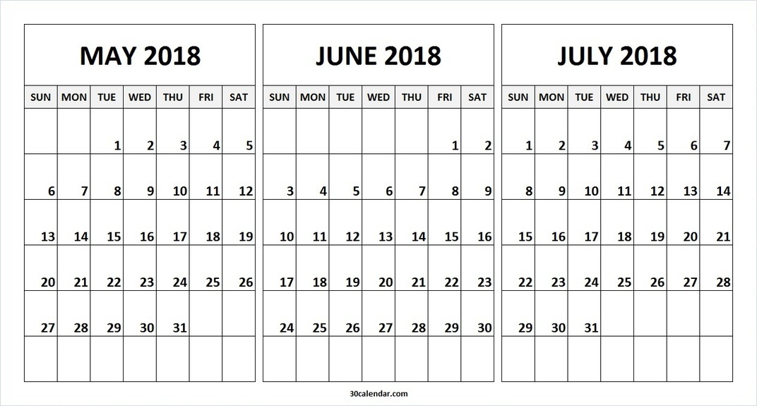 May June July 2018 Calendar 3 Month Calendar