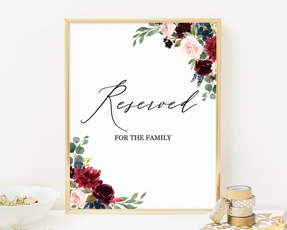Reserved Table Sign Printable Template Wedding Reserved Sign For Table Reserved Bridal Party Burgundy Blush Greenery Instant Download