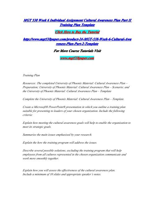 Mgt 538 Week 6 Individual Assignment Cultural Awareness Plan