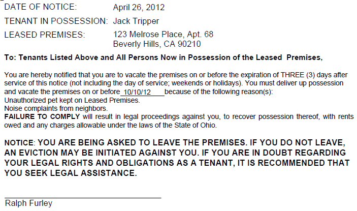 Eviction Notice Form 3 5 7 Or 30 Day Notice To Vacate