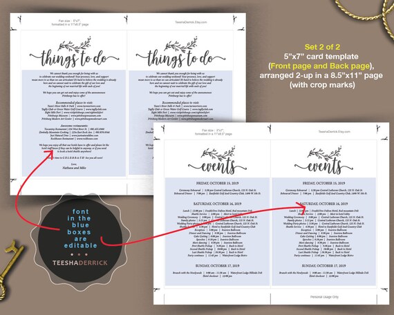 Wedding Itinerary Things To Do Card Template Pdf File Wedding Event Items Place To Visit Favorite Restaurant Rustic Vines Ted418 72