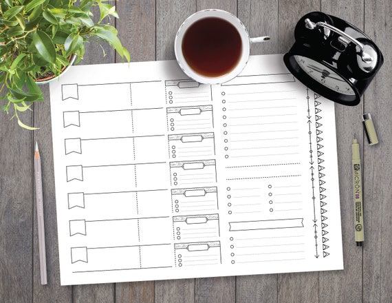 8 5x11 Printable Planner Page Weekly Calendar Template Bullet Journal Printable Adult Coloring To Do List Grocery List Meal Planning