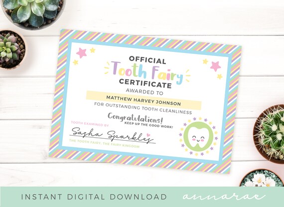 Tooth Fairy Certificate Template Letter From Tooth Fairy Printable Tooth Fairy Certificate Printable Letter Instant Download