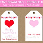 Valentine S Printable Gift Tags Editable Personalized Gift Favor Tags Template With Red Hearts Custom Valentines Day Instant Download Diy