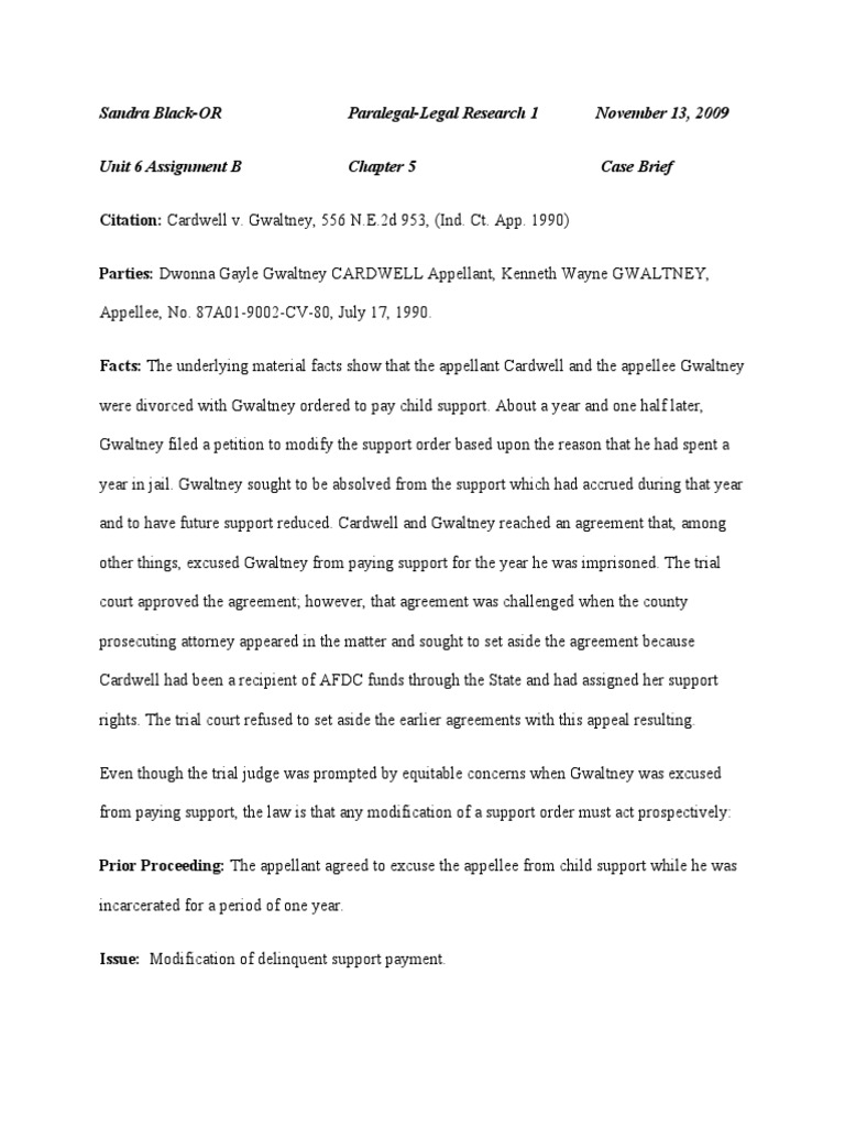 Sandra Black L1 Unit 6 Assignment B Chapt 5 10 Case Brief