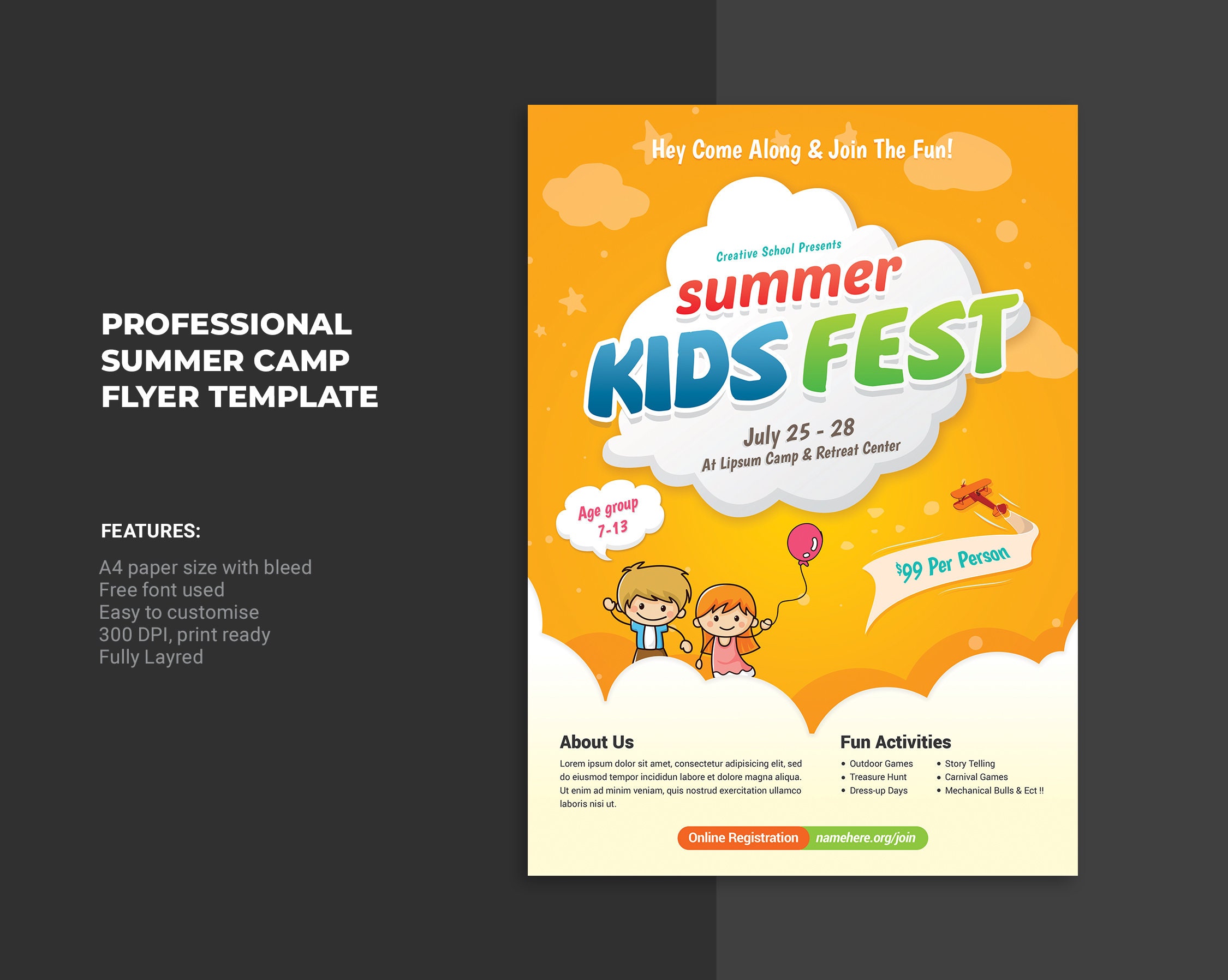 Kids Summer Camp Flyer Template Photoshop Template Instant Download