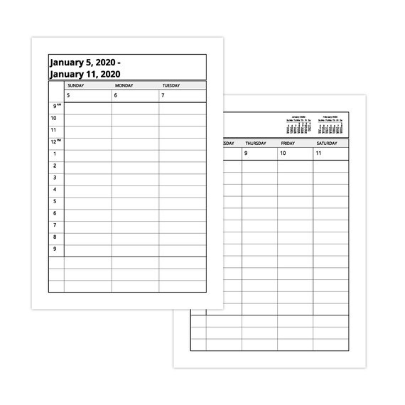 A5 Half Letter Size Vertical 2 Page Per Week 2020 Printable Calendar