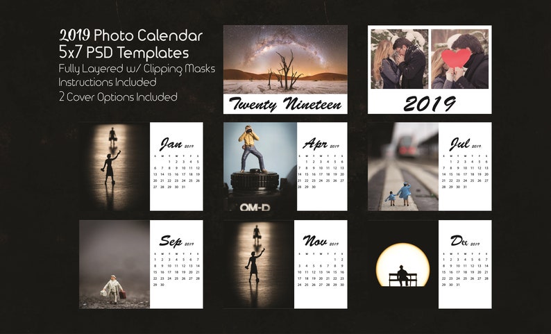 5x7 Photo Calendar Template 2019 3 Psd Templates Photoshop Calendar Templates 2019 Calendar Template Monthly Calendar Photoshop