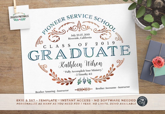 Pioneer Service School Graduation Certificate Template Personalize As Many As You Need For 1yr Free Demo Special Pioneer Gifts Jw Gift