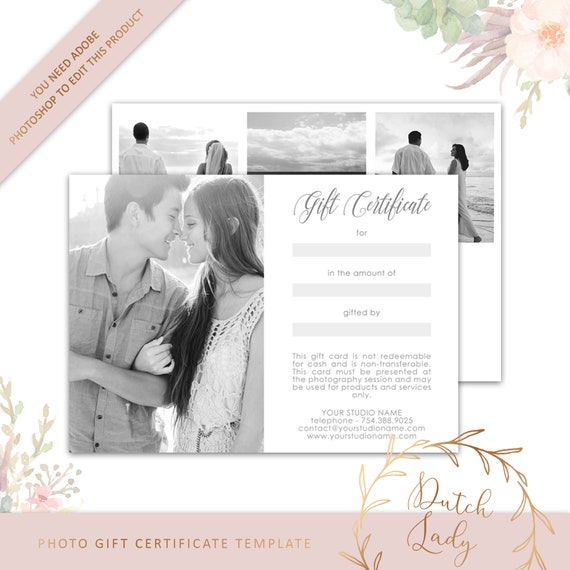 Photography Gift Certificate Template Photo Gift Card Black White Collage Design 3 Instant Download Layered Psd Files