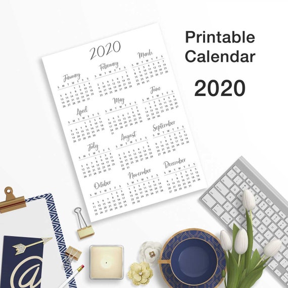Printable Calendar 2020 Printable Desktop Calendar Jpeg And Png Instant Download Personalized Printable Large Wall Calendar For Study