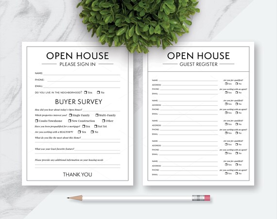 Real Estate Open House Sign In Sheet Real Estate Marketing Template Guest Register Buyer Survey Printable Pdf Form