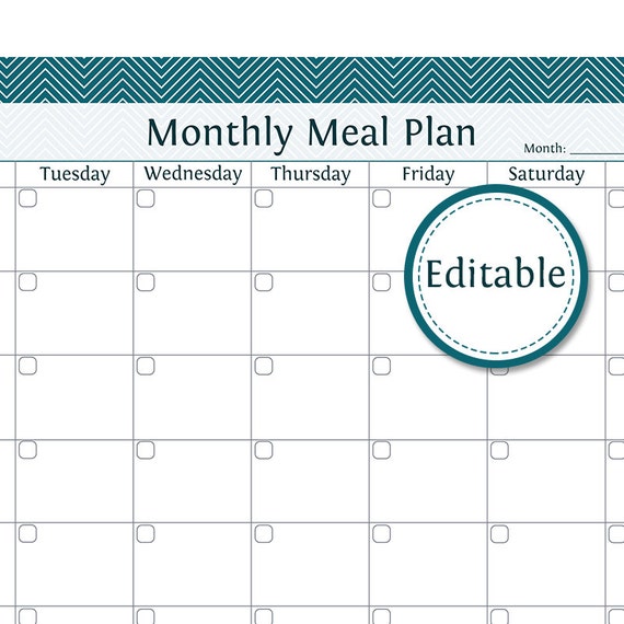 Monthly Meal Planner Template Printable Monthly Meal Planner
