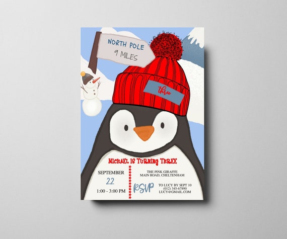 Penguin Invitations Editable Penguin Birthday Party Invitation Template Printable Penguin Winter Party Invite Boys Party Invite C085
